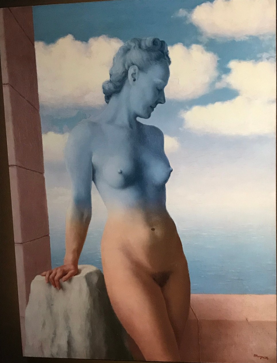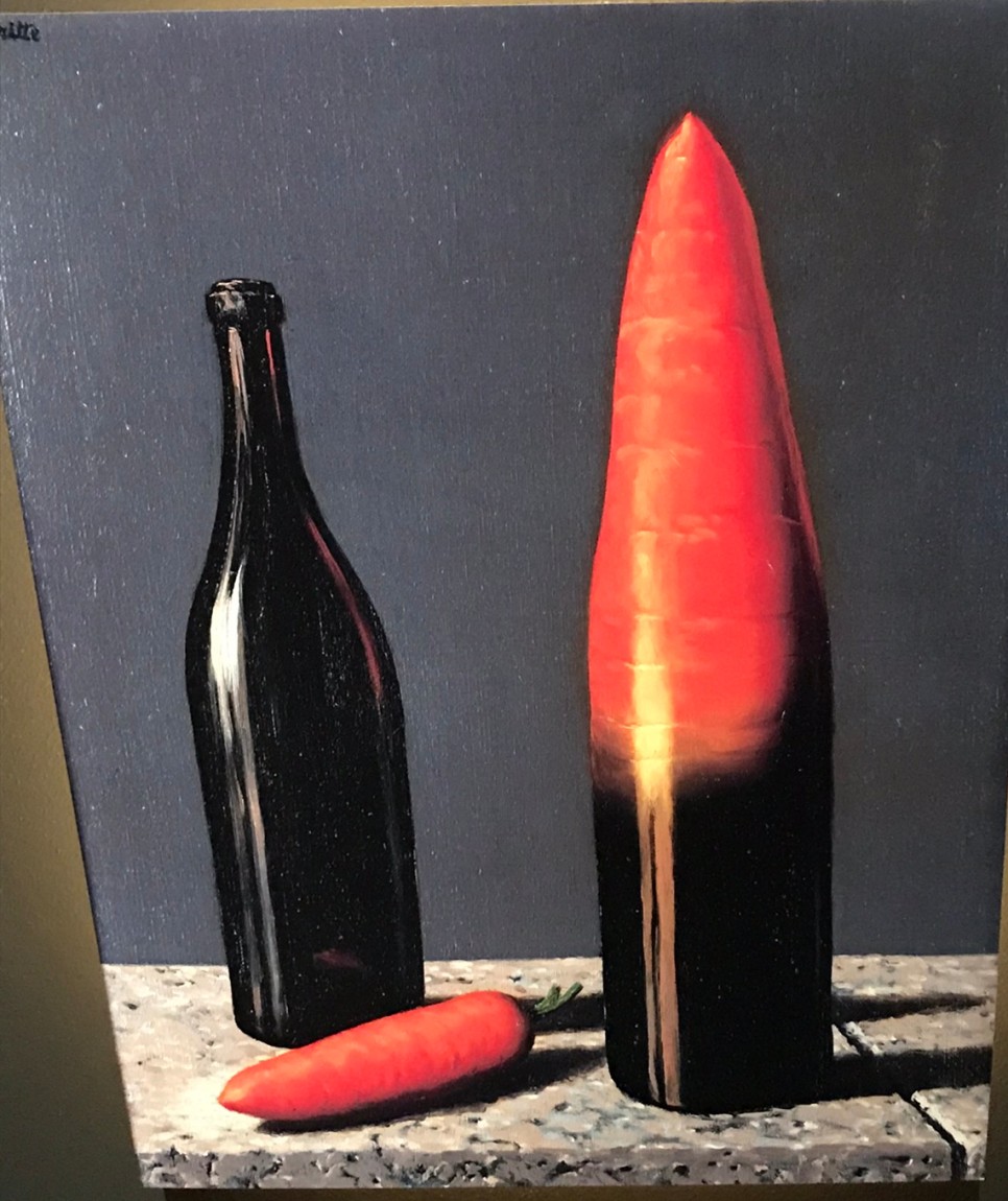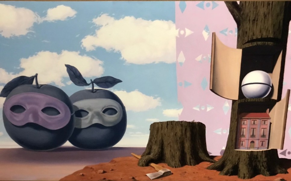 입장할 때 나눠주는 팸플릿에 보면, 「사물이 지닌 고유한 의미의 틀에서 벗어나 상식에 도전하는 끊임없는 시도를 한다.」 「평범한 사물들을 불편하고 낯선 환경 또는 어울리지 않는 단어와 배치하면서 말과 이미지를 탄생시킨다.」 「대상들의 예기치않은 결합을 통해 상식을 깨고 사고의 일탈을 유도하는 기법」 뮤지엄 입구에서부터 보이는 중절모와 과일, 르네 본인을 상징하는 듯한 신사, 구름이 보인다.